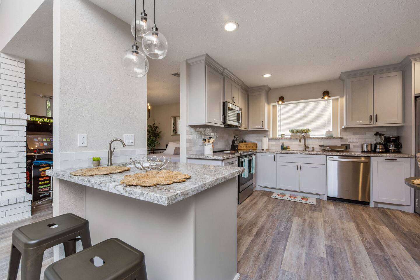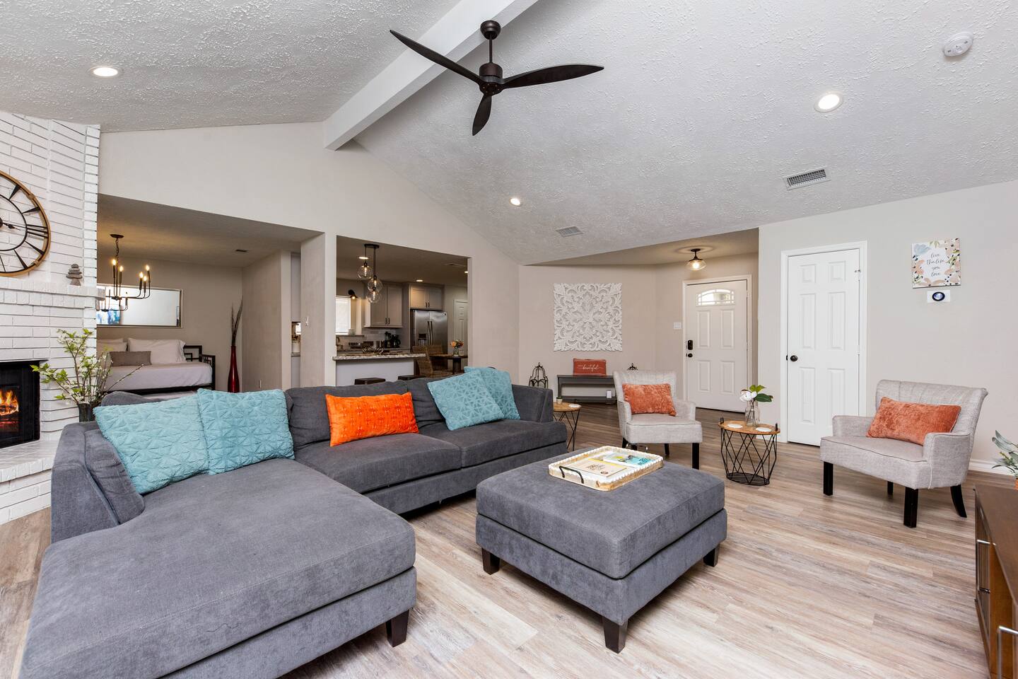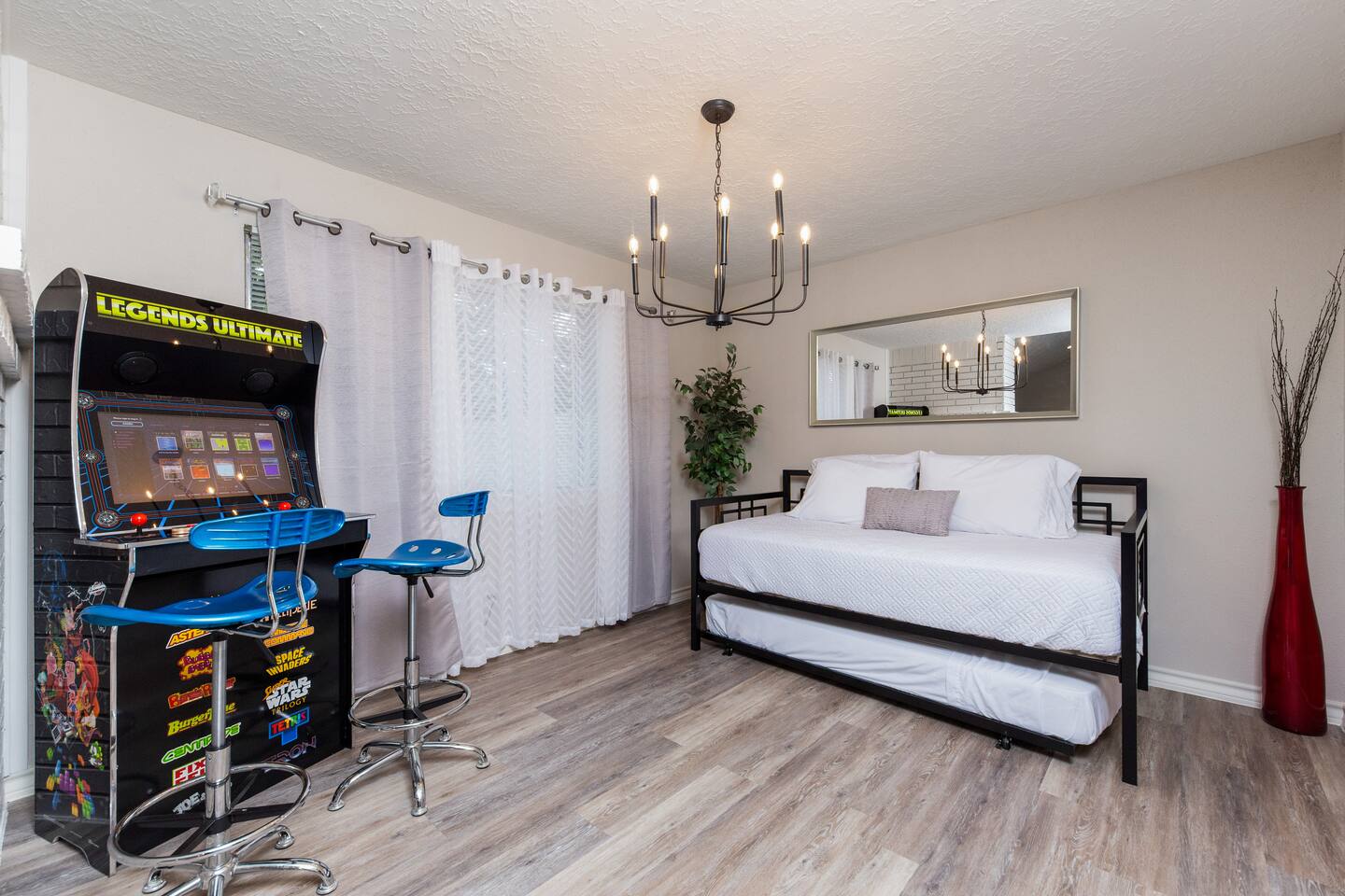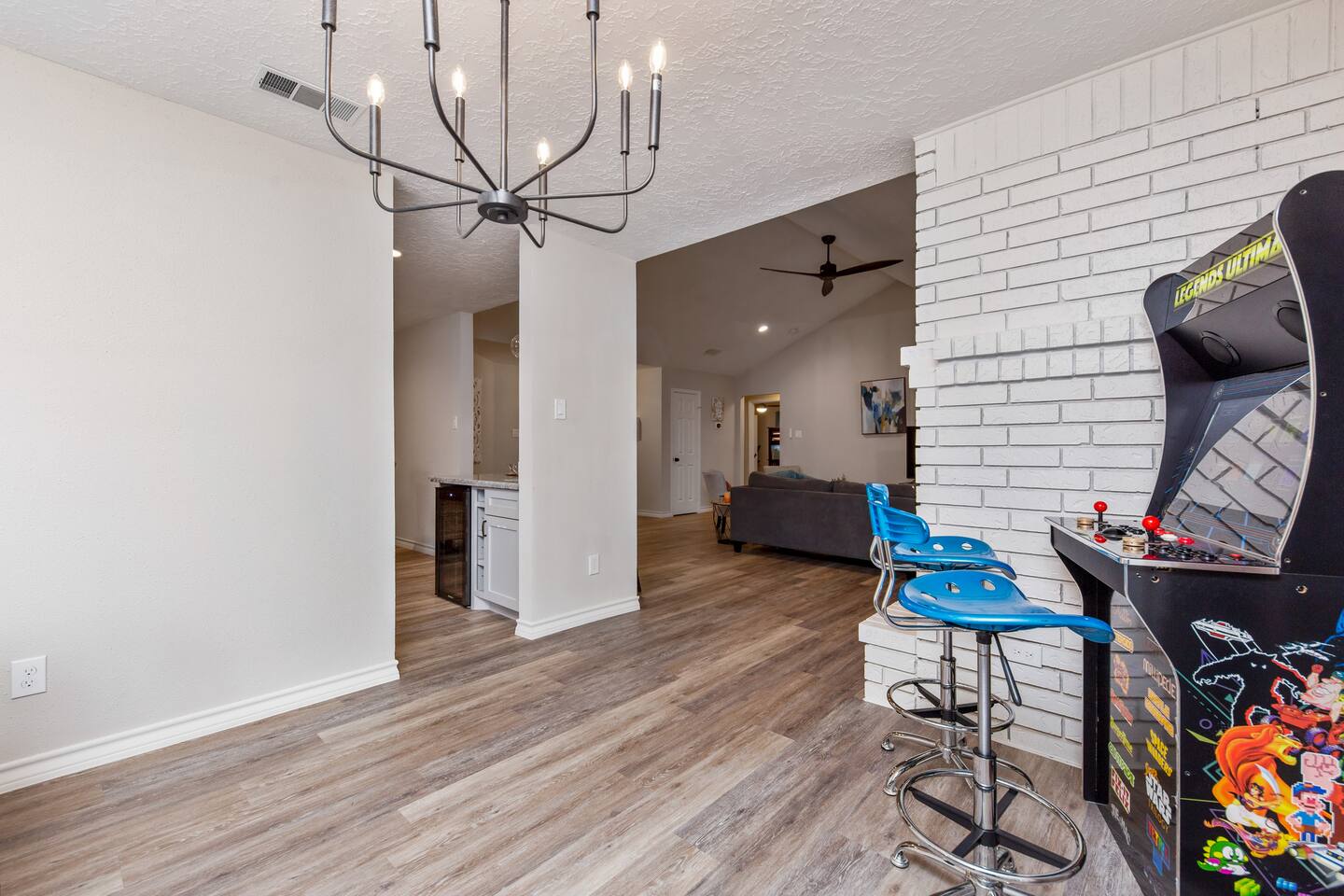 Freshly renovated home in Katy / West Houston — ideal for families, small groups, and business travelers. Conveniently close to Energy Corridor, I-10, Hwy 6, CityCentre, Memorial City Mall, Houston Methodist West Hospital, and major Katy attractions. Easy access to shopping, dining, corporate offices, and entertainment. Enjoy on-site amenities including an arcade game, ping pong table, and 3 TVs—perfect for relaxing after a day exploring. King Bed in Master bedroom. 7 beds in total!